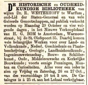 Na de dood van Rembertus woonde de weduwe van de eerste notaris van Warffum, Neeltje Grietje de Waal, er een tijdlang. Deze notaris Wijndelt Wijndelts overleed al op 41-jarige leeftijd in 1879. Wijndelts had Westerhoff’s testament vlak voor zijn dood nog opgemaakt op 2 maart 1874. De oudhedenverzameling van Rembertus wordt de start van het Museum voor Oudheden later het Groninger Museum. Blijkbaar werden zijn boeken niet aangeschaft door dit museum (zie de afbeelding na de bronnen).